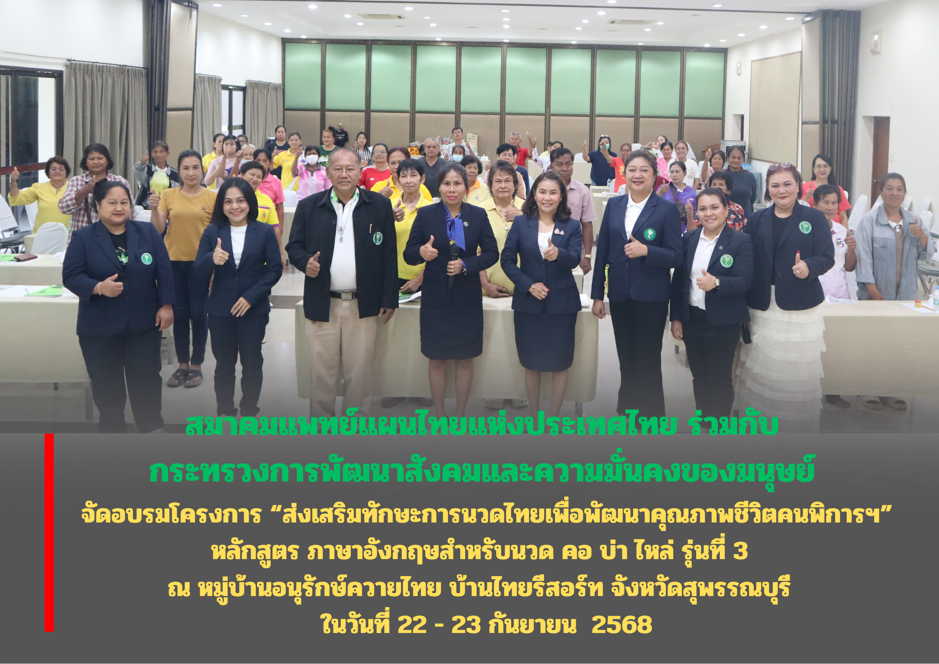 ซึ่งเป็นการอบรมต่อยอดจากการนวดไทย ให้มีมูลค่ามากยิ่งขึ้น