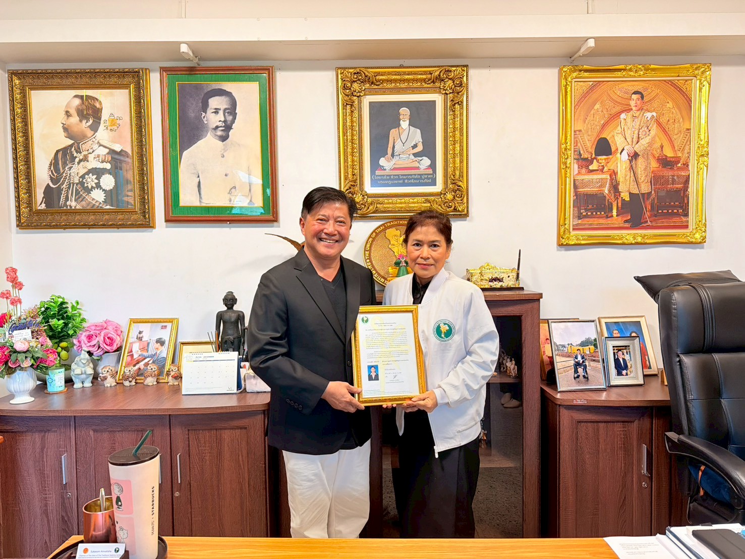 โดยมี ผู้อำนวยการศูนย์เรียนรู้ภูมิปัญญาการแพทย์แผนไทย บ้านต่อหนองจอก ร่วมแสดงความยินดี