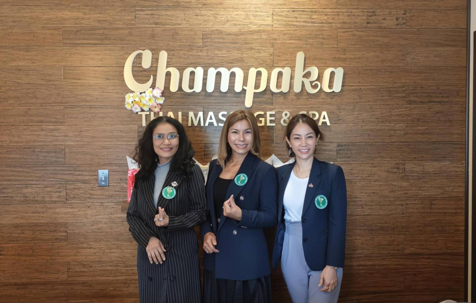 🌸 ทั้ง 2 ท่านได้รับการต้อนรับอย่างอบอุ่นจาก ครูน้ำเพชร และครูละมัย ผู้อำนวยการศูนย์ฯ ซึ่งได้นำชมการดำเนินงานของ Champaka Thai Massage & Spa ที่มีจุดเด่นด้านการออกแบบในสไตล์รีสอร์ท 🏡 ผสมผสานการใช้วัสดุธรรมชาติอย่างกลมกลืน พร้อมมาตรฐานการให้บริการระดับสากล 🏆