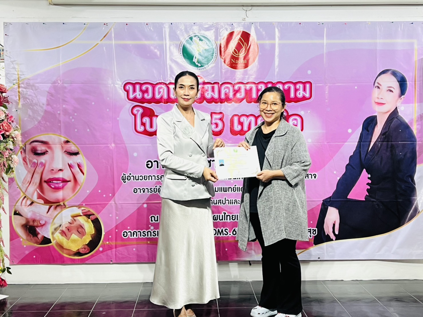 สมาคมแพทย์แผนไทยแห่งประเทศไทย ขอแสดงความยินดีกับผู้สำเร็จหลักสูตรนวดเสริมความงามใบหน้า 5 เทคนิค