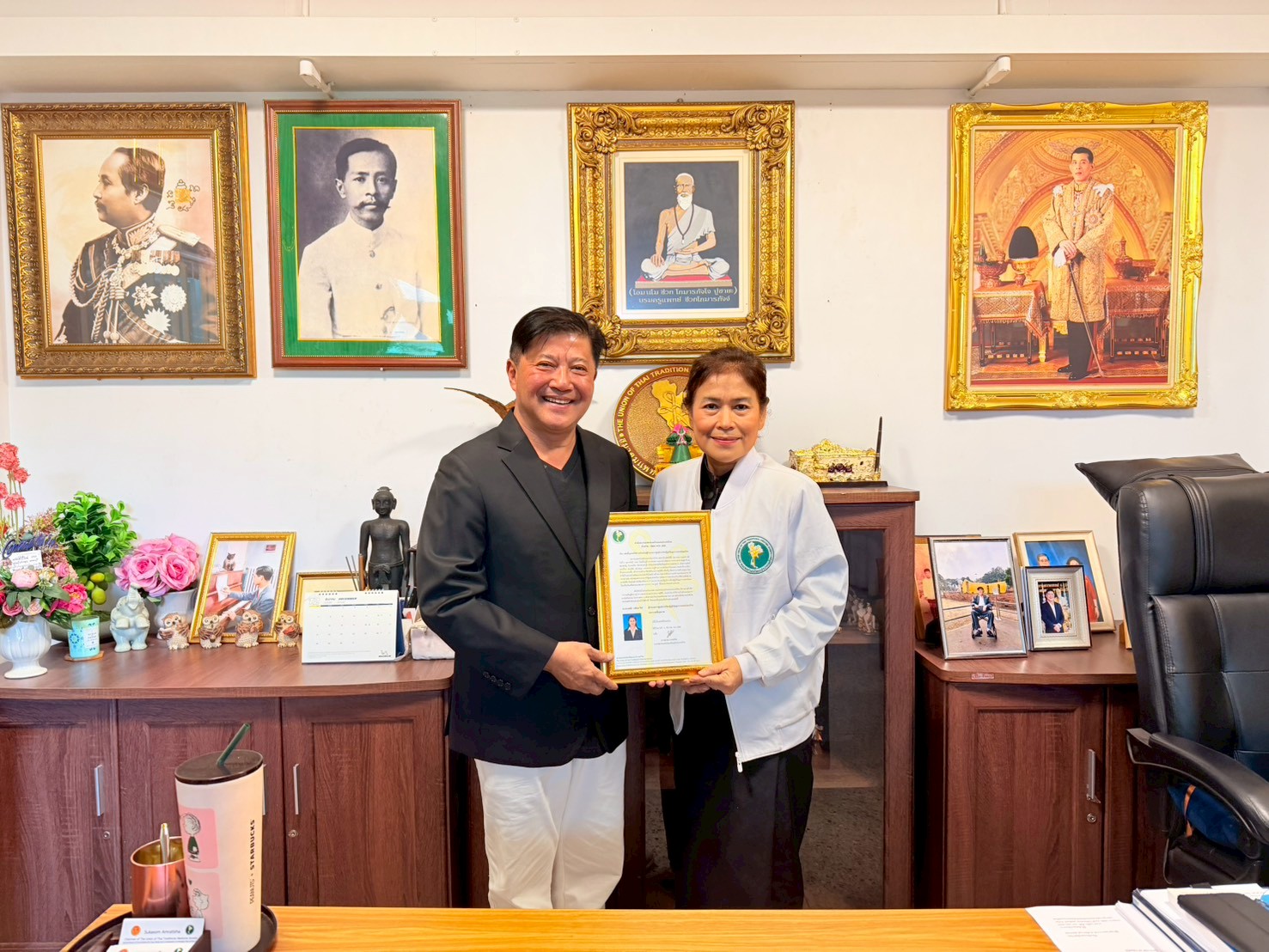 โดยมี ผู้อำนวยการศูนย์เรียนรู้ภูมิปัญญาการแพทย์แผนไทย บ้านต่อหนองจอก ร่วมแสดงความยินดี