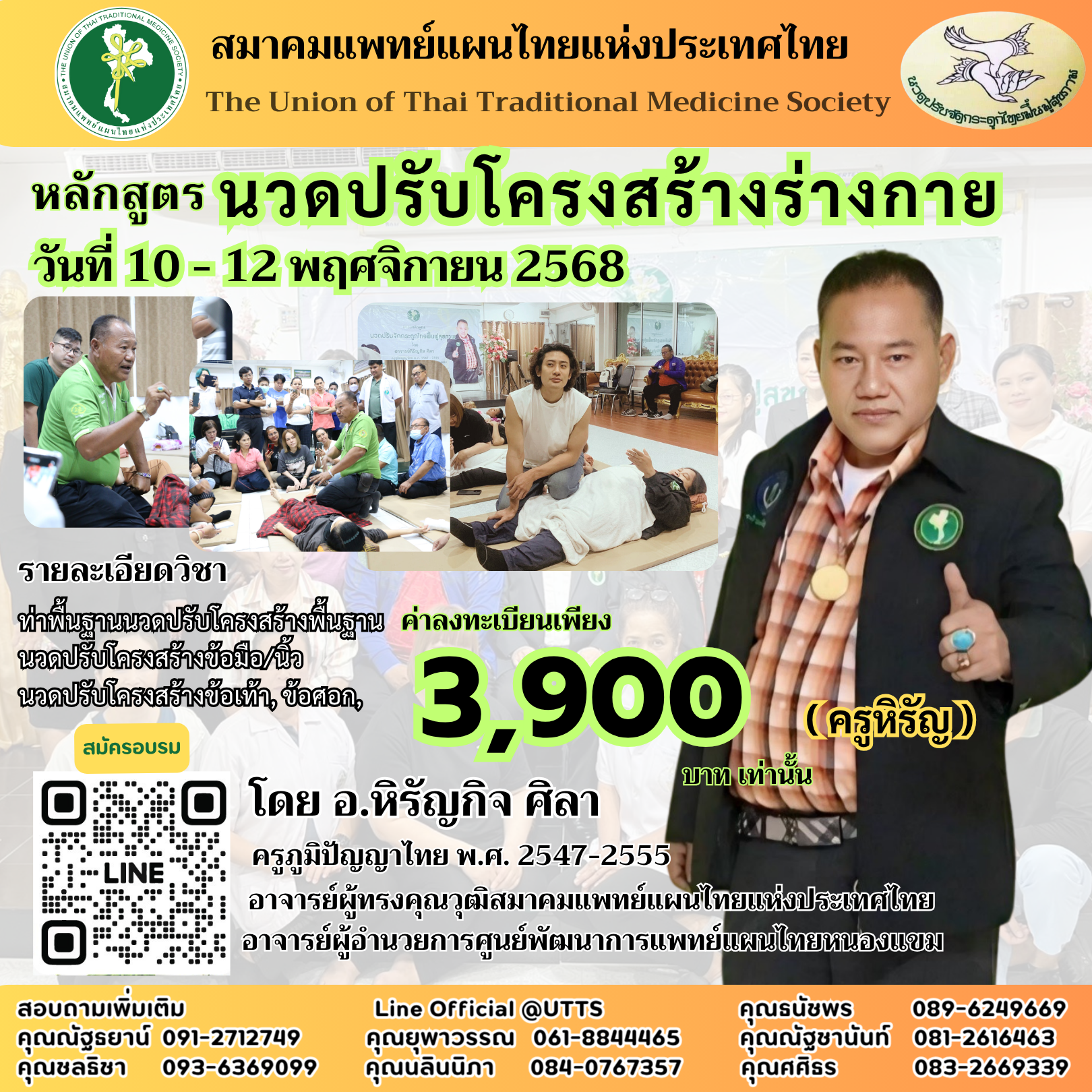 เตรียมความพร้อม ปรับพื้นฐานการนวด อบรม วันที 27 - 28 ตุลาคม 2568